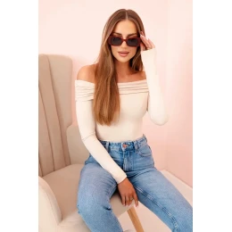 Dámska blúzka s dlhými rukávmi a odhalenými ramenami béžová