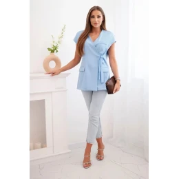 Dámská bunda bez rukávů s kravatou – elegantní střih modrý