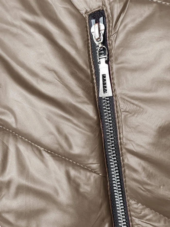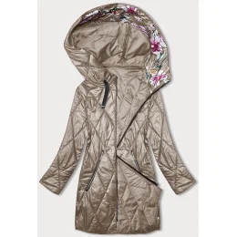 Dámska bunda cappuccino s ozdobnou kapucňou (B8227-12)