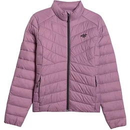 Kurtka damska 4F F0855 fioletowa 4FWSS26TDJAF0855 51S Lekka kurtka damska na chłodne dni z syntetycznym wypełnieniem, które zapewnia ciepło i dobrze radzi sobie z wilgocią. Hydrofobowa powłoka ogranicza przemakanie podczas lekkiego deszczu, a pikowana konstrukcja wspiera równomierne ocieplenie. Stójka chroni przed wiatrem, a dopasowany krój gwarantuje wygodę. Elastyczne mankiety i dół pomagają utrzymać ciepło, a kieszenie na zamek zwiększają funkcjonalność na co dzień. Dane techniczne:· Materiał główny: 100% poliester· Podszewka: 100% poliester· Wypełnienie: 100% poliester· Puch syntetyczny - zapewnia ciepło i lekkość, pozostając łatwy w pielęgnacji nawet po kontakcie· Hydrofobowa impregnacja - materiał zewnętrzny ogranicza wchłanianie wody, wspiera ochronę przed lekkim deszczem· Pikowana konstrukcja - równomiernie rozkłada ocieplenie i nadaje kurtce dynamiczny, sportowy wygląd· Stójka pod szyją - chroni przed podmuchami wiatru i zimnem· Taliowany krój - podkre