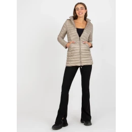 Tmavobéžová obojstranná prechodná bunda s prešívaním .