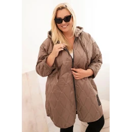 Štýlová prešívaná bunda plus size je vynikajúcou voľbou pre ženy nosiace väčšie veľkosti - od XL do 4XL. Jej voľný oversized strih zaručuje maximálne pohodlie pri nosení a dokonale sa prispôsobí postave bez toho, aby obmedzoval pohyb. Model má geometrické prešívanie, ktoré opticky zoštíhľuje siluetu, a módnu kapucňu so sťahovacou šnúrkou s leopardím vzorom. Zips a praktické náprsné vrecko podčiarkujú moderný a funkčný charakter bundy.