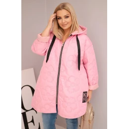 Dámská bunda Plus Size prošívaná s kapucí a nápisem růžová model 21808659 - K-Fashion