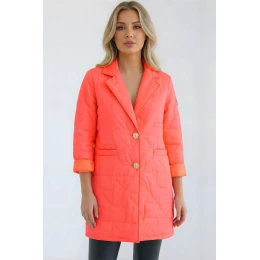 • Dámská bunda Plus Size prošívaná s ozdobnými knoflíky a límcem neonově růžová