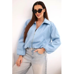 Dámská bunda se zipem a nabíranými rukávy modrá