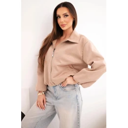 Dámska bunda so zipsom a balónovými rukávmi camel