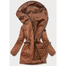 Dámska bunda v karamelovej farbe s kapucňou (B8105-12)