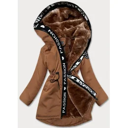 Dámská bunda v karamelové barvě s kožešinovou podšívkou model 21345406 - S'WEST