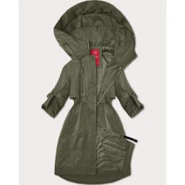 Dámska bunda v olivovej farbe s ohrnutými rukávmi LHD (LHD-24591)
