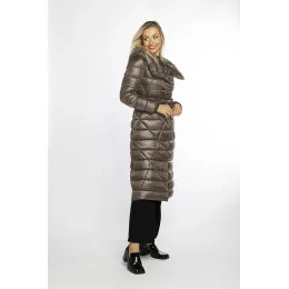 Bunda je lehce vypasovaná, je zateplená vrstvou péřové syntetické výplně, má dvě kapsy a zapíná se šikmým zipem. Model má kapuci, kterou není možné odepnout. Bunda má délku ke kolenům.