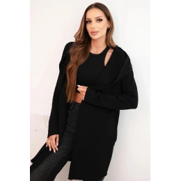 Dámská bunda z bavlny s kapucí a prodlouženým předním dílem černá