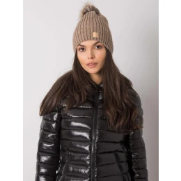 Tmavě béžová čepice s bambulí Polský výrobek