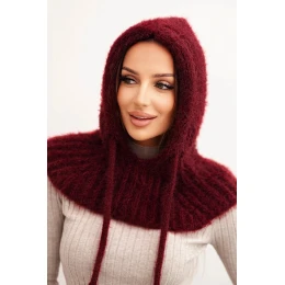 Dámská čepice s kapucí a jemným vzorem se šňůrkami bordový
