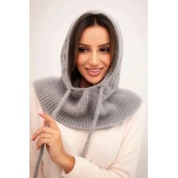 Dámska čiapka s kapucňou a pleteným vzorom sivá