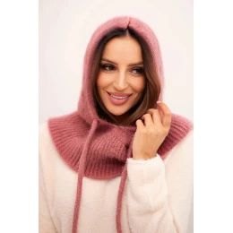 Dámská čepice s kapucí a pleteným vzorem tmavě růžová
