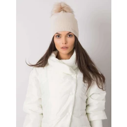 Béžová zimná čiapka s brmbolcom Poľský výrobok
