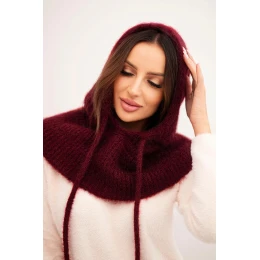 Dámska čiapka s kapucňou, šnurovaním a pleteným vzorom bordová