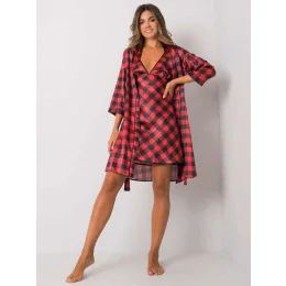 Čiernočervená kockovaná dámska nočná súprava .