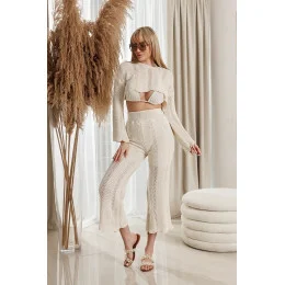 Dámska čipkovaná súprava vo farbe ecru - top a dlhé nohavice (1978)