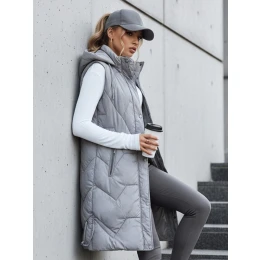 Dámska dlhá prešívaná sivá vesta FashionStreet TY5266
