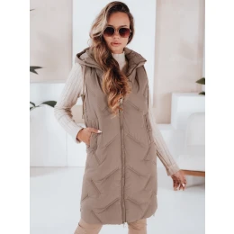 Dámská dlouhá prošívaná vesta s kapucí camel Dstreet model 21991330 - FashionStreet