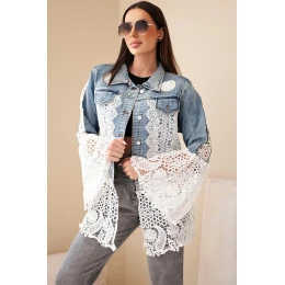 Dámská džínová bunda z bavlny a květinovou krajkou tmavě džínová