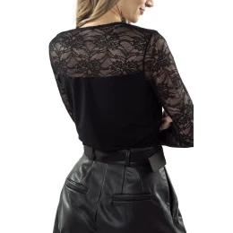 Dámská halenka Enrica ELDAR - černá barva - z vysoce jakostní viskózy - výstřih z průhledné látky - dlouhé krajkové rukávy