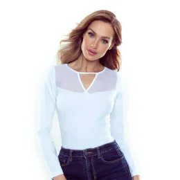Dámska košieľka Heidi Eldar - vyrobená z kvalitnej bavlny - dlhé rukávy - výstrih a zadná časť zdobené priesvitným tylom Zloženie materiálu: 88% bavlna + 8% polyamid + 4% elastan