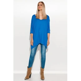 Dámská asymetrická halenka je k dispozici v jedenácti módních barvách: černá, špinavě růžová, vínová, khaki, béžová, červená, lila, modrá džínovina, velbloudí, ocelová, amarantová. Je to něco, co budete nosit každý den a do práce. Pohodlná a designová halenka vás zachrání před mnoha tísnivými pocity typu "nemám co na sebe". Halenka je tak univerzální, že bude slušet každé postavě. Důležité je, že ji můžete nosit s kalhotami, legínami nebo sukní. Hranicí je pouze vaše představivost. Rukávy jsou zakončené šňůrkami, takže si můžete pohrát s tvarem halenky. Hluboký trojúhelníkový výstřih zvýrazňuje klíční kosti. Halenka nabízí velkou volnost pohybu a je vyrobena z příjemného, prodyšného úpletu.