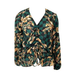 Dámská halenka vhodná na pláž k plavkám. Výstřih do V, možnost stažení předního dílu pomocí šňůrky pod prsy. Dlouhý rukáv ukončený gumičkou.