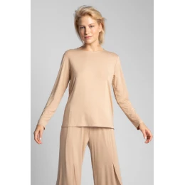 Dámský viskózový top s dlouhým rukávem. Přirozená měkkost a pružnost viskózy, na zádech s padavým kulatým výstřihem u krku, znamená luxus a eleganci.