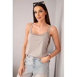 Dámská halenka na ramínka s krajkovým lemem fango