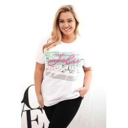 Dámská halenka Plus Size s flitrovým nápisem bílá + zelená