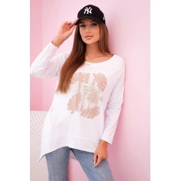 Dámska blúzka s vreckami a ozdobnou potlačou biela
