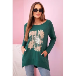 Dámská halenka s kapsami a ozdobným potiskem zelený