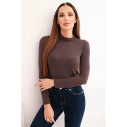 Dámska kašmírová blúzka s rolákom a dlhými rukávmi hnedá