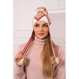 Dámska klapka na uši Eunika K322 ecru+red