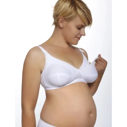 Materská dojčiaca podprsenka s odopínacím košíčkom v bielej farbe. Je vyrobená z kvalitnej jemnej bavlny. Košíček je možné odopnúť pomocou spony umožňujúcej pohodlné dojčenie. Podprsenka je bez výstuže a bez kostíc. Klasické zapínanie na chrbte na dva háčiky s voľbou tri polôh. Ramienka širšie nastaviteľné.