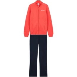 Dres damski Champion Full Zip Suit pomarańczowo-granatowy 118289 RS073 Dres damski Champion sprawdzi się na co dzień. Miękki w dotyku materiał o wysokiej zawartości bawełny. Dodatek poliestrowych włókien. Standardowy krój. Bluza z jednokierunkowym zamkiem. Ściągacze przy mankietach i w dolnej części bluzy. Otwarte kieszenie w bluzie. Spodnie z nogawkami wykończonymi niewielkimi rozcięciami i regulowaną sznurkiem, elastyczną talią. Spodnie bez kieszeni. Materiał: 55% bawełna, 45% poliester