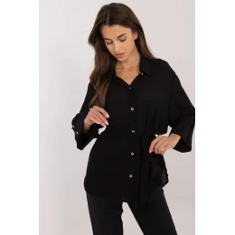 Ležérna dámska košeľa, ideálna na každodenné nosenie a do práce. Je vyrobená z hladkej jednofarebnej tkaniny, ktorej prevažujúcou zložkou je bavlna, poskytujúca pohodlie a priedušnosť. Má klasický golier a rukávy s 3/4 dĺžkou, čo jej dodáva ležérny, ale štýlový vzhľad. Košeľa má štandardnú dĺžku a zapínanie na gombíky, má tiež opasok na zaväzovanie, ktorý zvýrazňuje pás a dodáva ženský nádych. Ide o univerzálny kúsok, ktorý je ideálny na ležérny štýl a spája pohodlie s klasickým štýlom.