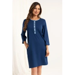 Koszula nocna 165 J/25 to funkcjonalna i stylowa propozycja dla kobiet, które cenią komfort i swobodę ruchów. Wykonana z wysokiej jakości, 100% bawełny, jest przewiewna, miękka i przyjazna dla skóry. Model posiada rękaw 7/8, rozpinany półokrągły dekolt oraz praktyczne kieszenie na biodrach, co zwiększa jej funkcjonalność – doskonała również dla mam karmiących. Długość przed kolano i luźny krój sprawiają, że koszula idealnie nadaje się na każdą porę roku.