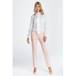 Jednoduchá košile s fontánou, kterou lze uvázat na mašli nebo nechat volně rozvázanou. Mírně vypasované, se záševky na prsou a dlouhými rukávy zakončenými manžetou na knoflík.