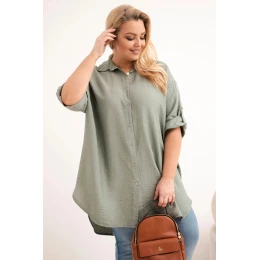 Dámská košile Plus Size z viskózy s delším zadním dílem khaki