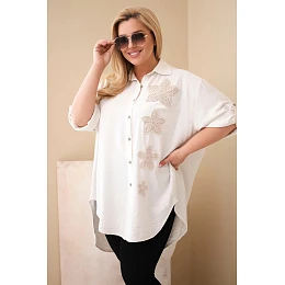 Dámska košeľa v nadmernej veľkosti z viskózy s kvetinovou výšivkou v béžovej farbe