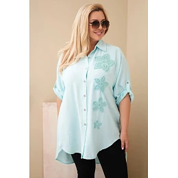 Dámske tričko Plus Size z viskózy s kvetinovou výšivkou mätovej farby