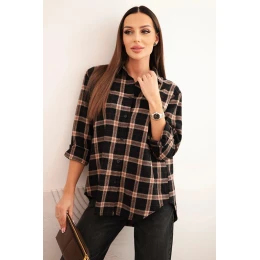 Dámská kostkovaná bavlněná košile s delším zadním dílem černá