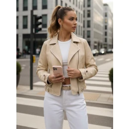Dámska kožená bunda DARKGLORY beige FashionStreet TY5567