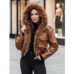 Dámská kožená bunda s kožešinou hnědá Dstreet model 21995411 - FashionStreet