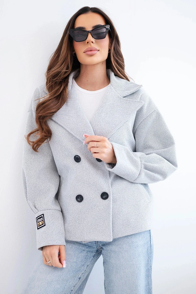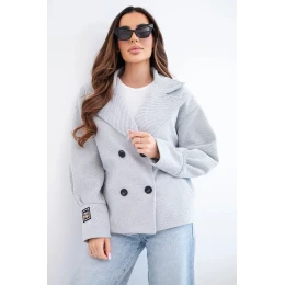 Dámská krátká dvouřadová bunda s límcem šedý melanž