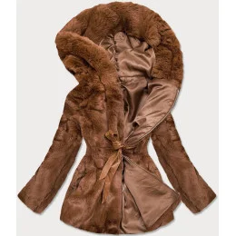 Hnedá dámska bunda - kožúšok s kapucňou (BR9743-22)